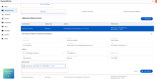 - Open Remit address -> select Edit -> use drop down to add a bank account.